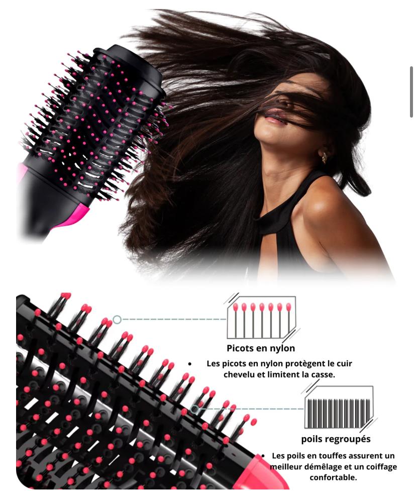 فرشاة الشعر ومكواة التجعيد أو السشوار في أداة واحدة، مصمم لتبسيط روتين العناية بالشعر وتوفير الوقت. يعمل على تنعيم، تجفيف, وتجعيد الشعر في خطوة واحدة دون الحاجة إلى استخدام عدة
